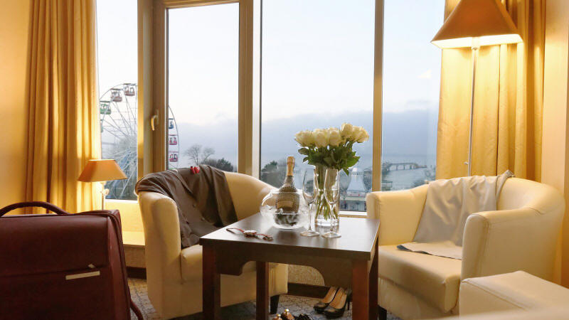 Балтыйскае мора, суседні востраў Узнам, Зорную Алею і старажытны пірс.